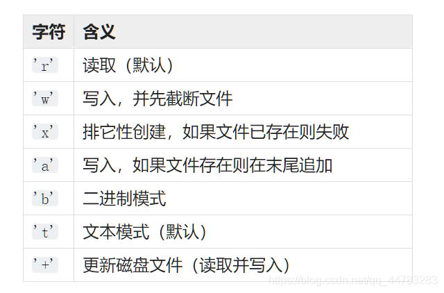 mode的参数如下,如果b(二进制)模式,打开文本会报错