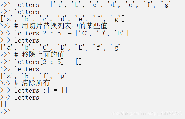 以 : 访问所有元素,前开后闭,var = [start : end], start和end默认为开始和最后的元素