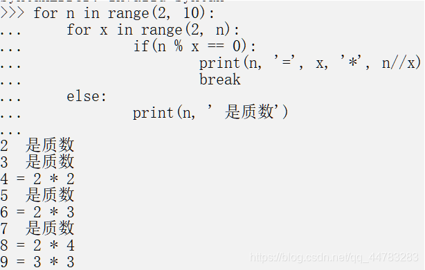 a, 判断质数,用了for的否定,else语句是嵌套循环中的否定句,不属于if!!!