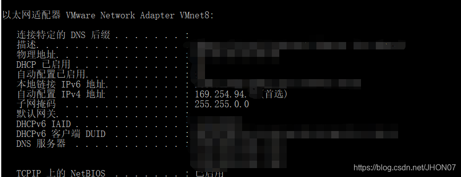 有一段时间没有使用虚拟机了:今天打开后突然不能使用了,发现主机ping不通虚拟机了,而虚拟机可以正常联网,可以ping主机