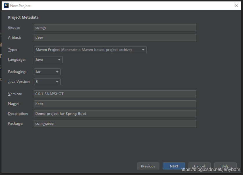 因为后续打算将“代码学习和实践”写成一个系列的文章,文中演示的工程都作为该工程的子模块,所以这里项目名Name就填写deer。