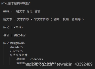 <div>和</div>,第一个标签是开始,第二个标签是结束。结束标签会有斜线。 - 也有一部分标签是单独呈现的,比如: