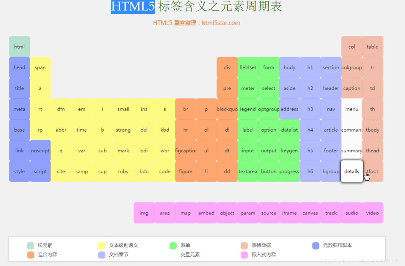 <!DOCTYPE html>声明为HTML5文档(html版本说明)<html>....<html/>:是文档的开始标记和结束标记。是html页面的根元素,在他们之间是文档的头部。包含文档的元数据(meta)数据<title>....</title>定义网页标题,在浏览器标题栏显示<body>.....<body/>之间的文本是可见的网页主题内容
