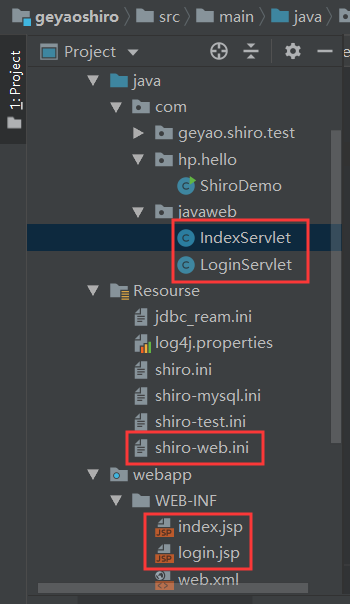 <dependency><groupId>org.apache.shiro</groupId><artifactId>shiro-web</artifactId><version>1.2.3</version></dependency><dependency><groupId>javax.servlet</groupId><artifactId>javax.servlet-api</artifactId><version>3.0.1</version><scope>provided</scope></dependency>看看目录结构