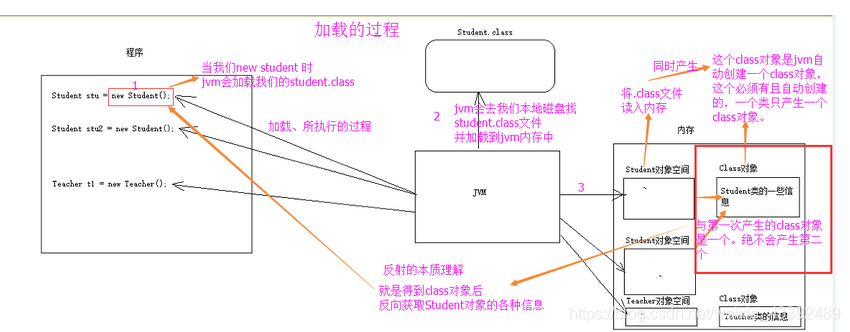 Class对象的由来是将class文件读入内存,并为之创建一个Class对象。