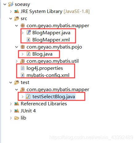 import com.geyao.mybatis.util.MyBatisUtil;public class testSelectBlog {@Testpublic void testSelectBlogNoInterface() {SqlSession session =MyBatisUtil.getSqlSession();Blog blog =(Blog)session.selectOne("com.geyao.mybatis.mapper.BlogMapper.selectBlog", 1);session.close();System.out.println(blog);}