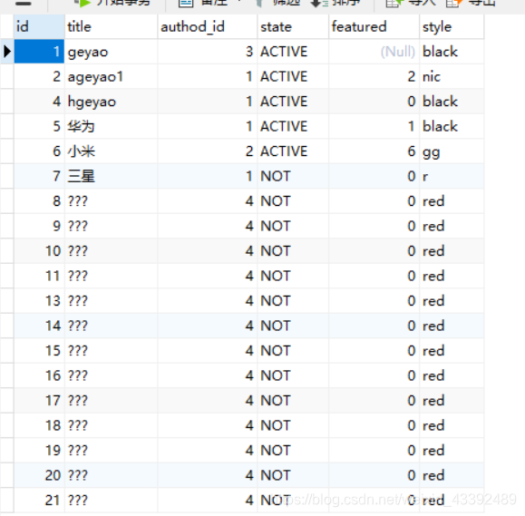 public void testupdateBlog() {SqlSession session =MyBatisUtil.getSqlSession();BlogMapper blogMapper =session.getMapper(BlogMapper.class);Blog blog = blogMapper.selectBlog(1);//Blog blog=new Blog();blog.setId(1);blog.setTitle("geyao");blog.setAuthodId(3);//blog.setStyle("balck");//blog.setState("active");//blog.setFeatured(false);//blog.setAuthodId(2);int count= blogMapper.updateBlog(blog);session.commit();session.close();System.out.println(blog);System.out.println("修改"+count+"记录");