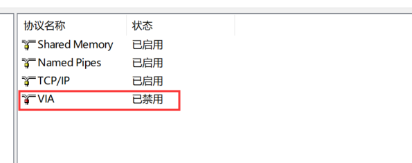 遇到这种情况,打开sql server配置管理器,双击【sql server网络配置】将其展开,双击子项【MSSQLSERVER的协议】,在右面的内容窗口中找到【VIA】选项将其设置为禁用就可以了。