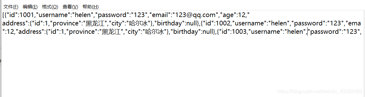 public class UserDao {private static Map<Integer, User> users =null;//@Autowiredstatic{users = new HashMap<Integer, User>();users.put(1001, new User(1001,"helen","123","123@qq.com",12,new Address(1,"黑龙江","哈尔冰" )));users.put(1002, new User(1002,"helen","123","123@qq.com",12,new Address(1,"黑龙江","哈尔冰" )));users.put(1003, new User(1003,"helen","123","123@qq.com",12,new Address(1,"黑龙江","哈尔冰" )));}private static Integer initId =1004;public void save(User user) {if(user.getId()==null) {user.setId(initId++);}users.put(user.getId(),user);}public Collection<User> getAll(){return users.values();}public User get(Integer id) {return users.get(id);}public void delete(Integer id) {users.remove(id);}
