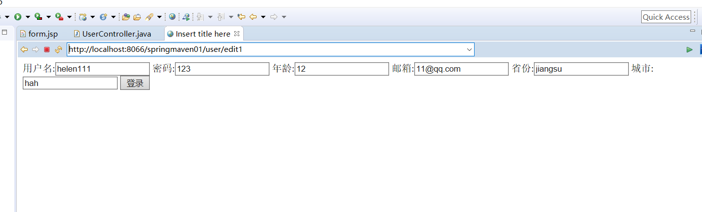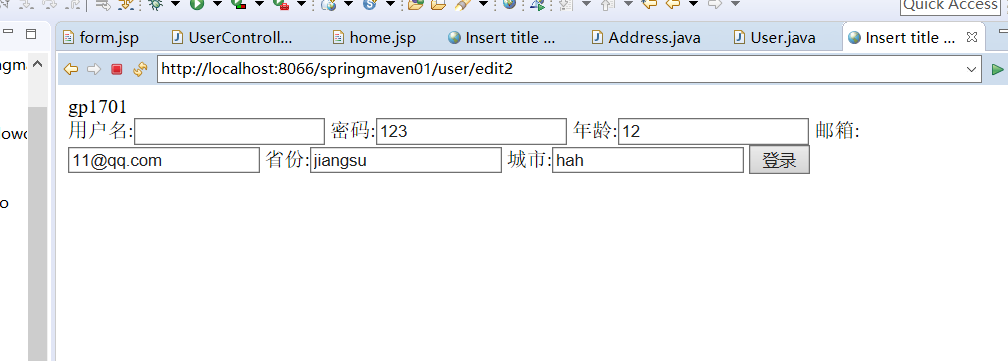 <label for="">城市:<input type="text" name="address.city" value="${user.address.city}"/></label>