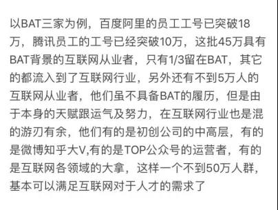 当然,在裁员消息一被爆出后,这些公司分分钟就能给你出一个声明来否认这些“不实消息”。 实在瞒不住的也能给你列出来一堆理由,例如,内部经营管理不善、资金周转不灵等。也不排除有的公司确实是在进行末位淘汰、优化结构,促进企业的优化升级。 对于这一现象,同时也才存在互联网市场人才饱和的说法。
