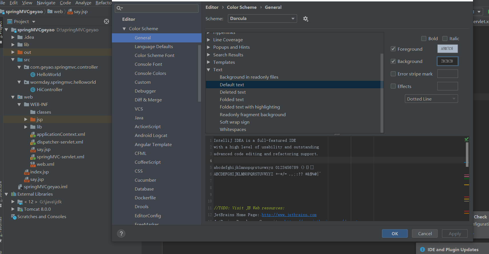 路径:File->Settings->Editor->Color Scheme->General