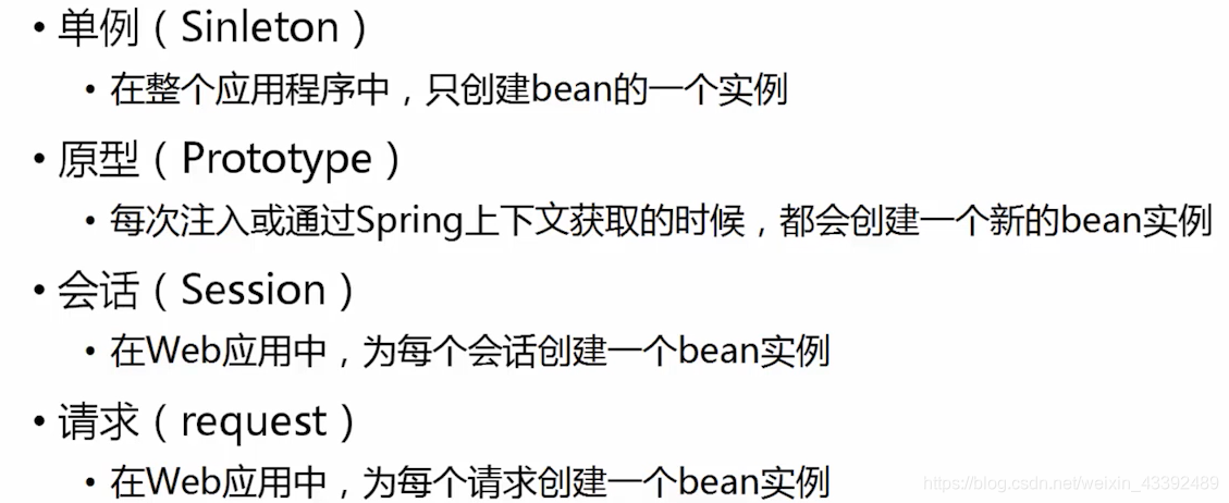 <beans xmlns="http://www.springframework.org/schema/beans"xmlns:xsi="http://www.w3.org/2001/XMLSchema-instance"xsi:schemaLocation="http://www.springframework.org/schema/beans http://www.springframework.org/schema/beans/spring-beans.xsd"><!--bean元素:描述当前的对象需要由spring容器管理id属性:标识对象 未来在应用程序中可以根据id获取对象class对象:被管理的对象的全名--><bean id="notepad" class="com.geyao.demo.NotePad" scope="singleton"/>