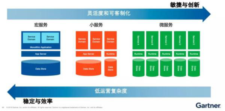 Gartner 在研究报告里提出了宏服务、小服务和微服务的粒度划分: