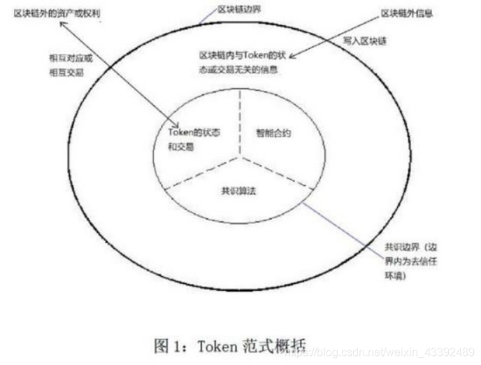 其中,Token、智能合约和共识算法都处于共识边界内,Token 与智能合约之间有密不可分的联系,共识算法确保了共识边界内的去信任环境。区块链内与Token 的状态或交易等无关的信息处于共识边界以外、区块链边界以内。区块链内外存在两类交互:一是区块链外信息写入区块链内;二是Token 与区块链外的资产或权利之间的相互交易(即市场共识,见第三部分第二小节对Token 的价格特征的讨论)或相互对应(见第三部分第一小节对区块链第二类应用的讨论)。