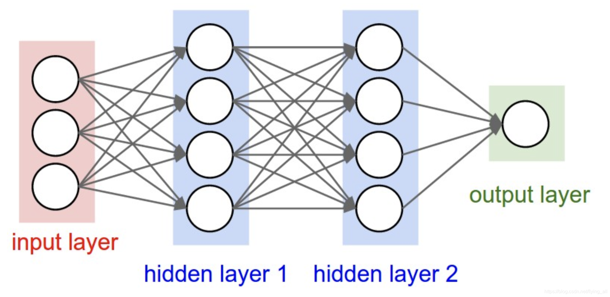 一般神经网络的结构分为:输入层、1-多个隐藏层、输出层。
