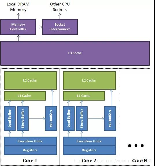 当一个核心在Invalid状态进行写入时,首先会给其它CPU核发送Invalid消息,然后把当前写入的数据写入到Store Buffer中。然后异步在某个时刻真正的写入到Cache Line中。当前CPU核如果要读Cache Line中的数据,需要先扫描Store Buffer之后再读取Cache Line(Store-Buffer Forwarding)。但是此时其它CPU核是看不到当前核的Store Buffer中的数据的,要等到Store Buffer中的数据被刷到了Cache Line之后才会触发失效操作。而当一个CPU核收到Invalid消息时,会把消息写入自身的Invalidate Queue中,随后异步将其设为Invalid状态。和Store Buffer不同的是,当前CPU核心使用Cache时并不扫描Invalidate Queue部分,所以可能会有极短时间的脏读问题。当然这里的Store Buffer和Invalidate Queue的说法是针对一般的SMP架构来说的,不涉及具体架构。事实上除了Store Buffer和Load Buffer,流水线为了实现并行处理,还有Line Fill Buffer/Write Combining Buffer 等组件,参考文献8-10给出了相关的资料可以进一步阅读。