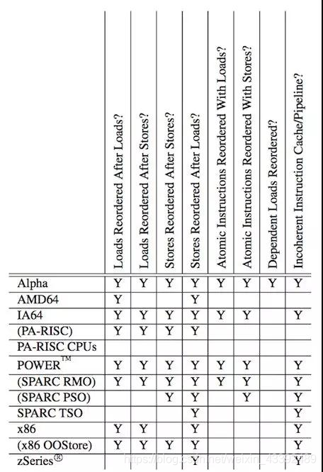 关于第一点,关于指令重排,这里不考虑架构的话,Load和Store两种操作会有Load-Store、Store-Load、Load-Load、Store-Store这四种可能的乱序结果。上文提到的三种屏障则是限制这些不同乱序的机制。