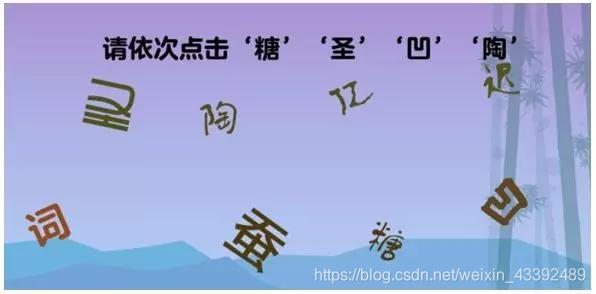点击式的图文验证和图标选择:图文验证,是通过文字提醒用户点击图中相同字的位置进行验证。