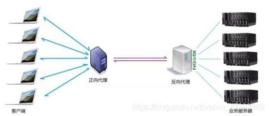 此时请求的来源也就是客户端是明确的,但是请求具体由哪台服务器处理的并不明确了,Nginx 扮演的就是一个反向代理角色。