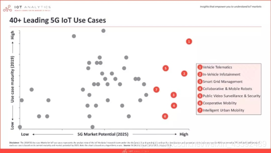 图1:44个5G物联网用例及其成熟水平和市场潜力