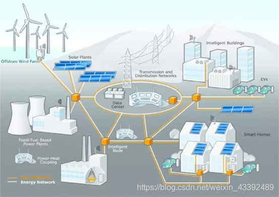 图4:智能电网及其通信网络示例(图片来源:ABB,德国电信)