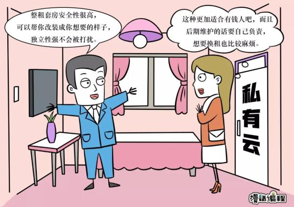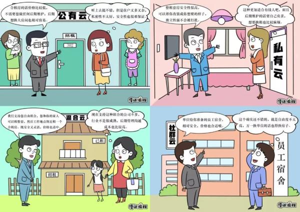 如果拿租房子来举例,公有云就像是单位的员工宿舍,在价格和安全性方面都是比较适中的。
