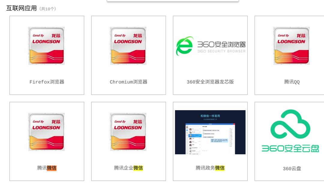 回到微信 for Linux 主题上,把上边关于龙芯支持生态计划的图片再稍微拉远一点,会发现“腾讯微信”、“腾讯企业微信”与“微信政务微信”都在其中。