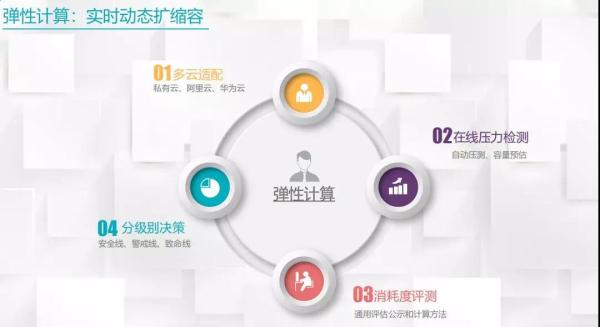 动态扩缩容不是一个工具,是一整套体系。它基于云服务,包含了在线压力检测和消耗度评测的功能,最终实现分级治理。