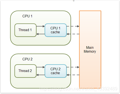当对非 volatile 变量进行读写的时候,每个线程先从内存拷贝变量到CPU缓存中。如果计算机有多个CPU,每个线程可能在不同的CPU上被处理,这意味着每个线程可以拷贝到不同的 CPU cache 中。