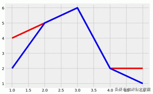 在同一轴上重叠图表很容易:我们只需要为所有想要的绘图编写代码,然后,我们可以简单地调用'plt.show()'将它们全部绘制在一起: