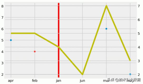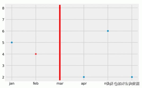 如果我们使用的是 subplots,那么将 axvline 添加到相应的 axe 就很简单,如上面的示例所示。但是,如果不使用 subplots,则应执行以下操作: