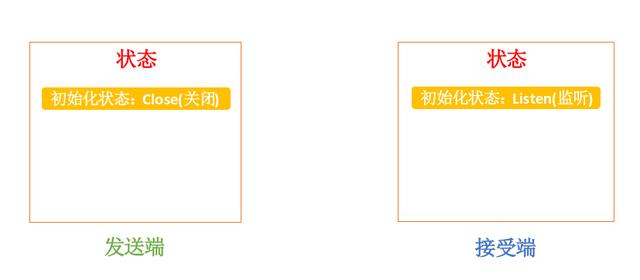 初始状态:客户端处于closed 状态,服务器处于listen(监听) 状态。