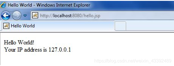 <body> Hello World!<br/><% out.println("Your IP address is " + request.getRemoteAddr()); %>