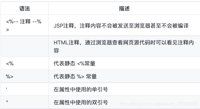 JSP注释主要有两个作⽤用:为代码作注释以及将某段代码注释掉。 JSP注释的语法格式: