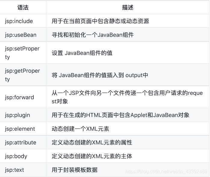 ⾏行行为标签基本上是⼀一些预先就定义好的函数,下表罗列列出了了⼀一些可⽤用的JSP⾏行行为标 签: