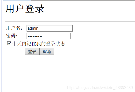 <html><head><base href="<%=basePath%>"><title>My JSP 'index.jsp' starting page</title><meta http-equiv="pragma" content="no-cache"><meta http-equiv="cache-control" content="no-cache"><meta http-equiv="expires" content="0">    <meta http-equiv="keywords" content="keyword1,keyword2,keyword3"><meta http-equiv="description" content="This is my page"><!--<link rel="stylesheet" type="text/css" href="styles.css">--></head><body><h1>用户登录</h1><hr><% request.setCharacterEncoding("utf-8");String username="";String password = "";Cookie[] cookies = request.getCookies();if(cookies!=null&&cookies.length>0){for(Cookie c:cookies){if(c.getName().equals("username")){username =  URLDecoder.decode(c.getValue(),"utf-8");}if(c.getName().equals("password")){password =  URLDecoder.decode(c.getValue(),"utf-8");}}}%><form name="loginForm" action="dologin.jsp" method="post"><table><tr><td>用户名:</td><td><input type="text" name="username" value="<%=username %>"/></td></tr><tr><td>密码:</td><td><input type="password" name="password" value="<%=password %>" /></td></tr><tr><td colspan="2"><input type="checkbox" name="isUseCookie" checked="checked"/>十天内记住我的登录状态</td></tr><tr><td colspan="2" align="center"><input type="submit" value="登录"/><input type="reset" value="取消"/></td></tr></table></form></body>