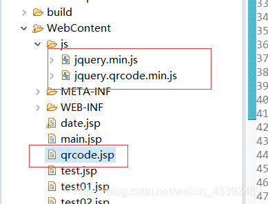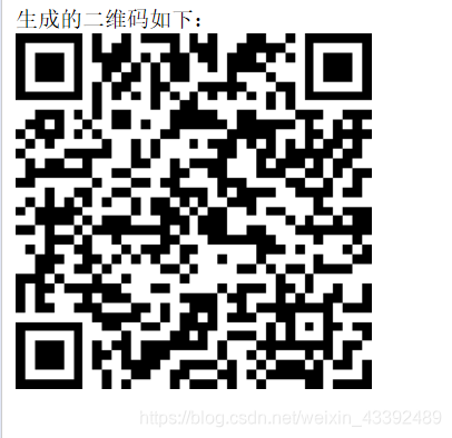 <%@ page language="java" contentType="text/html; charset=UTF-8"pageEncoding="UTF-8"%><!DOCTYPE html PUBLIC "-//W3C//DTD HTML 4.01 Transitional//EN" "http://www.w3.org/TR/html4/loose.dtd"><html><head><meta http-equiv="Content-Type" content="text/html; charset=UTF-8"><title>生成二维码</title><script type="text/javascript" src ="<%=request.getContextPath() %>/js/jquery.min.js"></script><script type="text/javascript" src ="<%=request.getContextPath() %>/js/jquery.qrcode.min.js"></script></head><body>生成的二维码如下:<br><div id = "qrcode"></div><script type="text/javascript">//二选一jQuery('#qrcode').qrcode("https://blog.csdn.net/weixin_43392489");//jQuery('#qrcode').qrcode({width: 250, height: 250,text: "www.baidu.com/hhh"});</script></body></html>