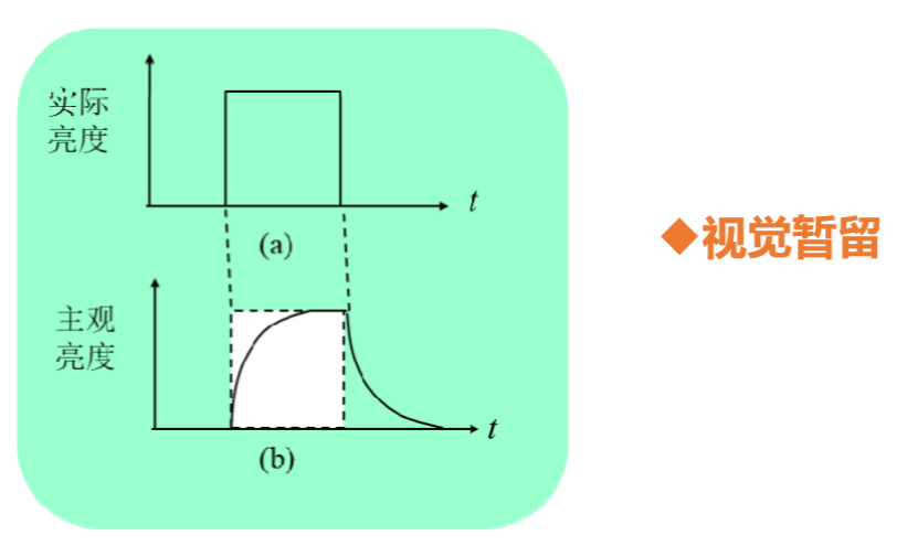 人眼对亮度变化跟踪滞后的性质称为视觉惰 性(短暂的记忆特性)。