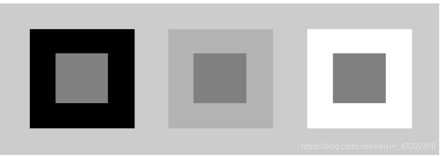 亮背景下显得暗、暗背景下显得亮。这种效应就叫同 时对比度。