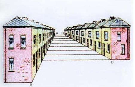 长度与透视: 线AB和线CD长度 完全相等,虽然它们 看起来相差很大。