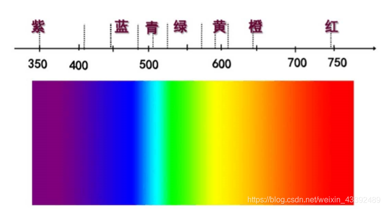 可见光随波长的不同依次呈现出紫、蓝、绿、黄、橙 (橘红)、红六种颜色,白光是由不同颜色的可见光线混 合而成的。