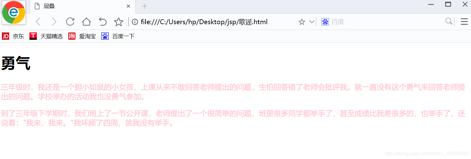 我们来思考一个问题:如果在html文件中对于同一个元素可以有多个css样式存在并且这多个css样式具有相同权重值怎么办?好,这一小节中的层叠帮你解决这个问题。