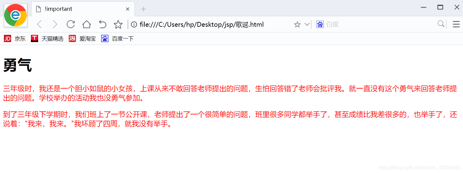 我们在做网页代码的时,有些特殊的情况需要为某些样式设置具有最高权值,怎么办?这时候我们可以使用!important来解决。