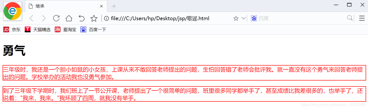 p{border:1px solid red;}<p>三年级时,我还是一个<span>胆小如鼠</span>的小女孩。</p>