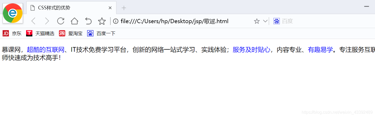 使用CSS样式的一个好处是通过定义某个样式,可以让不同网页位置的文字有着统一的字体、字号或者颜色等。