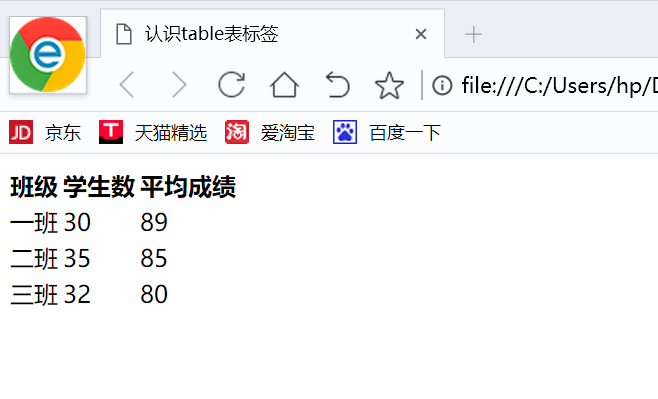 1、table表格在没有添加css样式之前,在浏览器中显示是没有表格线的
