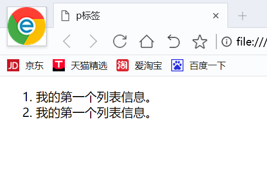 <ol><li>我的第一个列表信息。</li><li>我的第一个列表信息。</li>