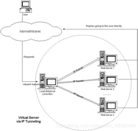 –用IP隧道技术实现虚拟服务器。这种方式是在集群的节点不在同一个网段时可用的转发机制,是将IP包封装在其他网络流量中的方法。为了安全的考虑,应该使用隧道技术中的VPN,也可使用租用专线。 集群所能提供的服务是基于TCP/IP的Web服务、Mail服务、News服务、DNS服务、Proxy服务器等等.