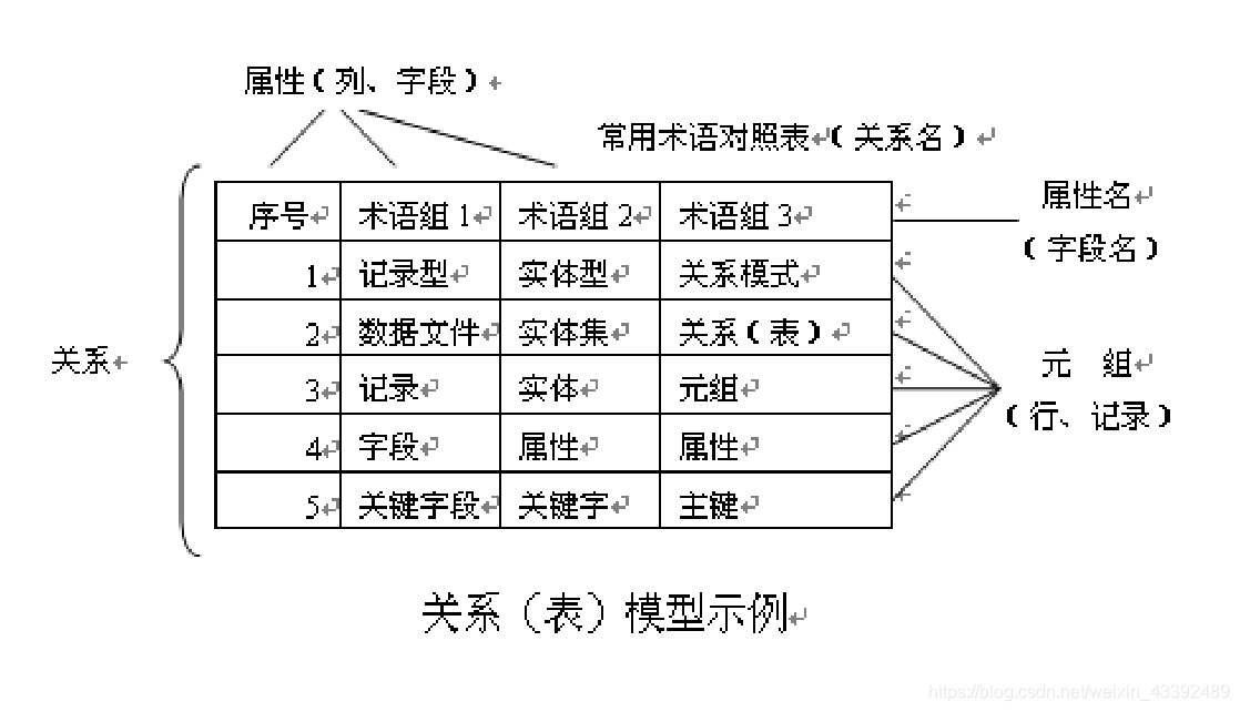 ( 1 )关系:一个关系就是一张二维表,每个关系都有一个关系名,即数据表名。 ( 2 )元组:表中的行称为元组,一行就是一个元组,对应表中一条记录。